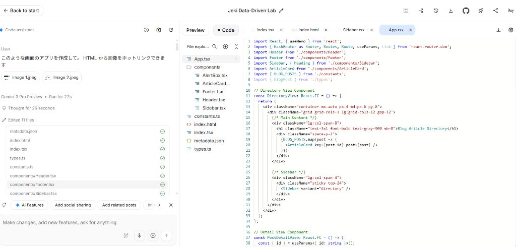 図: Google AI Studio で開発中の画面
